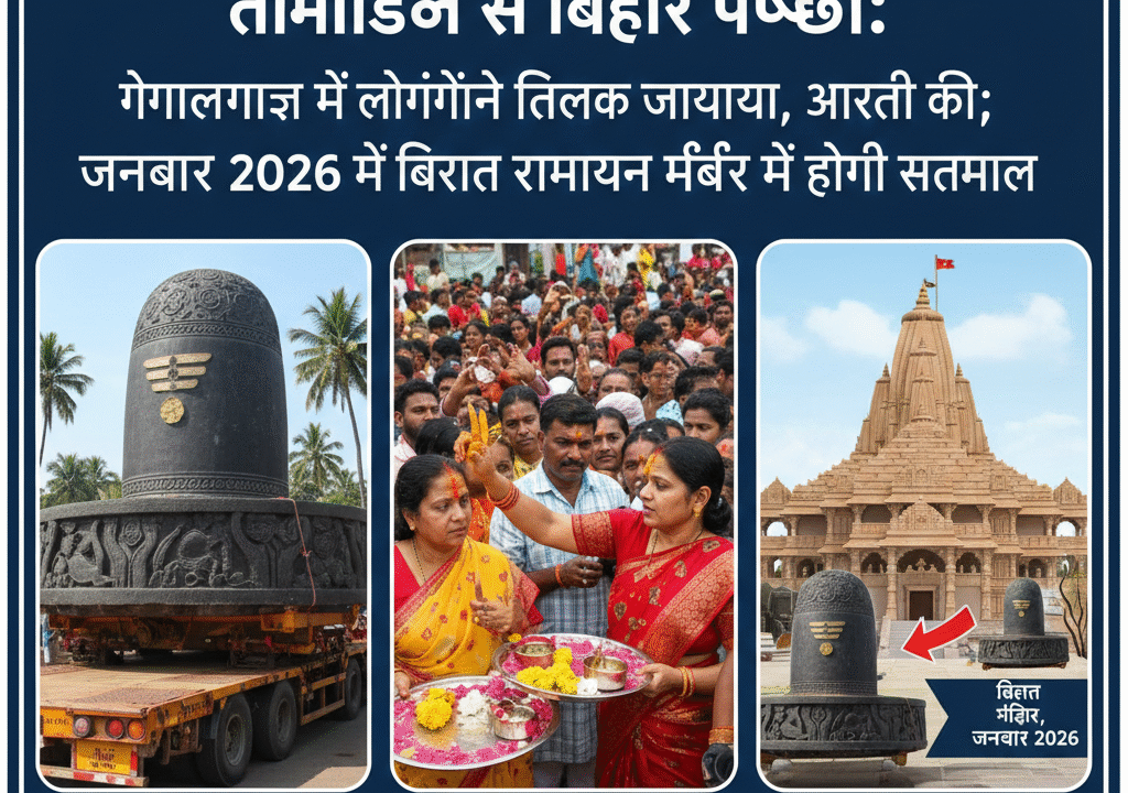 दुनिया का सबसे बड़ा शिवलिंग तमिलनाडु से बिहार पहुंचा: गोपालगंज में लोगों ने तिलक लगाया, आरती की; जनवरी 2026 में विराट रामायण मंदिर में होगी स्थापना
